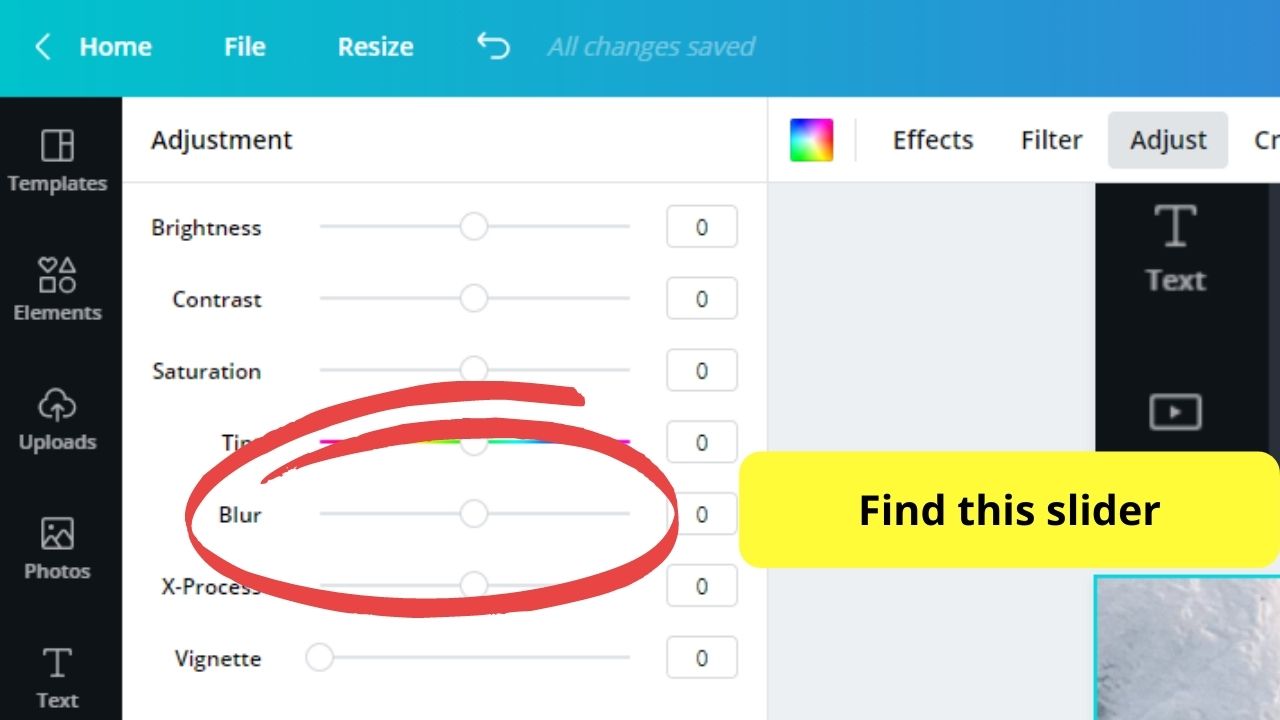 Para enfocar fotos e imágenes en Canva, haga clic y arrastre la foto o el elemento que desea usar en el lienzo en blanco. Haga clic en la imagen o el elemento hasta que aparezca la pestaña Ajustes en la barra de herramientas. Haga clic en Ajustar, busque el control deslizante Desenfocar y deslícelo hacia la izquierda para enfocarlo.
